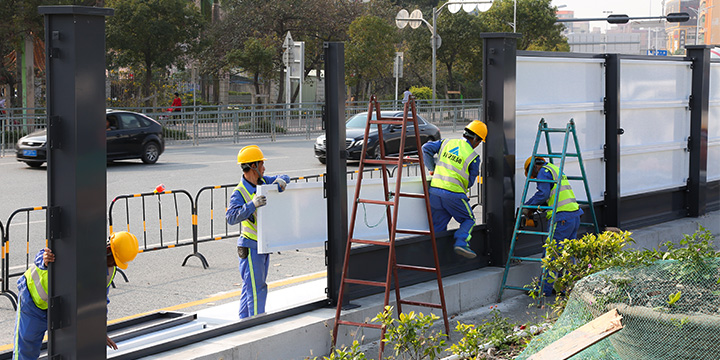 施工圍擋采用優(yōu)質的鋼材和精湛的焊接、噴涂技術,使用不同的圍擋立柱和連接方式,抗風能力強,滿足圍擋的安全性和經(jīng)濟性。